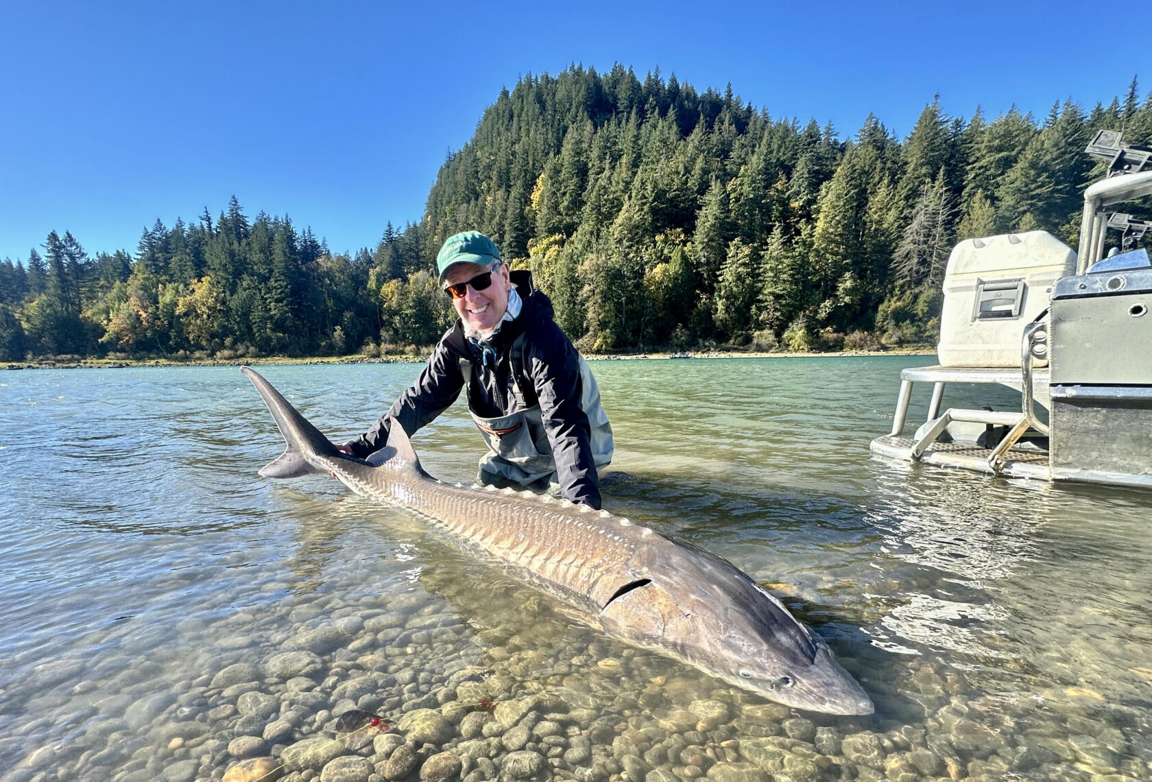 A day earlier, waiting for our monster to hit, Matt and I were shooting the breeze about his background as a fishing guide, mechanic and hockey dad. He also brought me up to speed on the white sturgeon. Endangered, these massive creatures can live up to 200 years. The fishery is now strictly catch and release. Reel it in, take a quick pic… and let ‘er go. We were sitting back in quiet reflection, enjoying a perfect day, when the rod bent sideways—and the game was afoot.